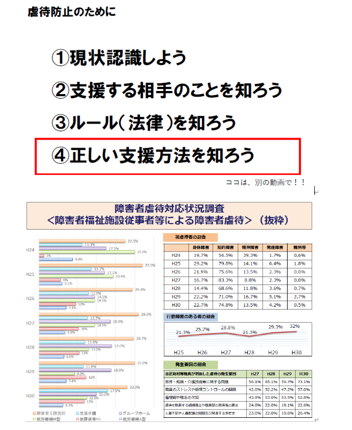 ④正しい支援方法に関しては、このあとに行う強度行動障害研修(基礎編)で学んでいきます!