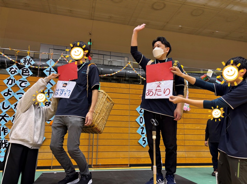 当たりとハズレの籠を持った職員がいますが、ハズレ籠に入れるとなんと0点に!!!