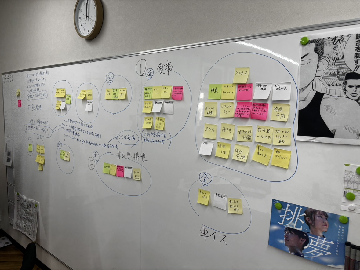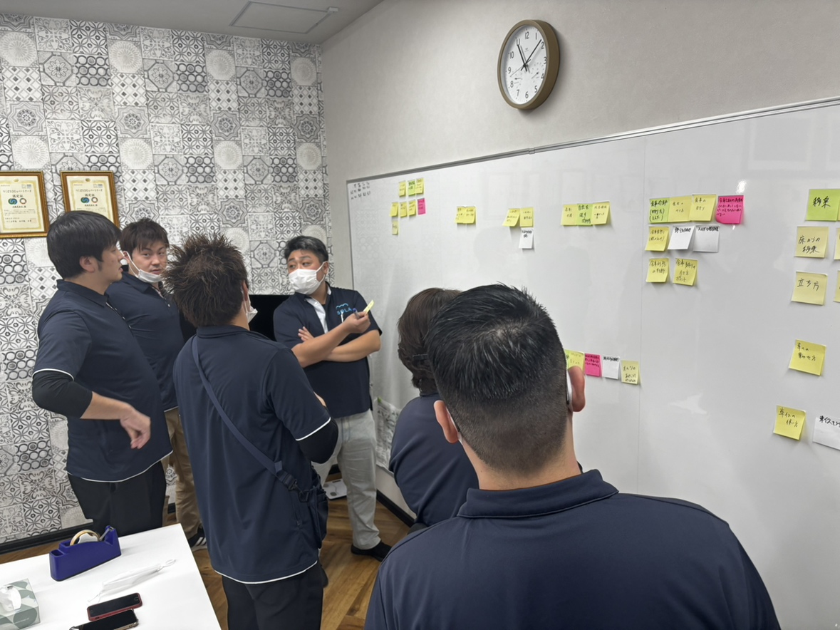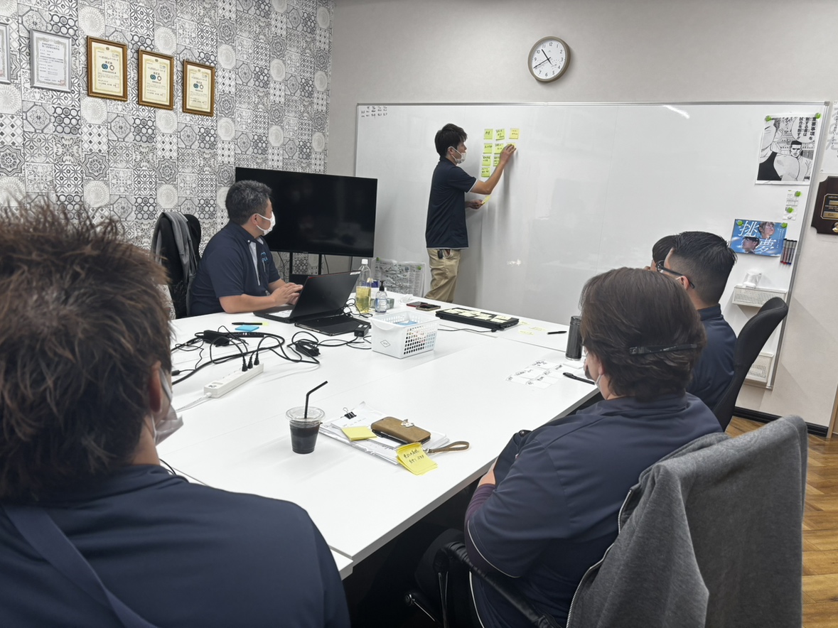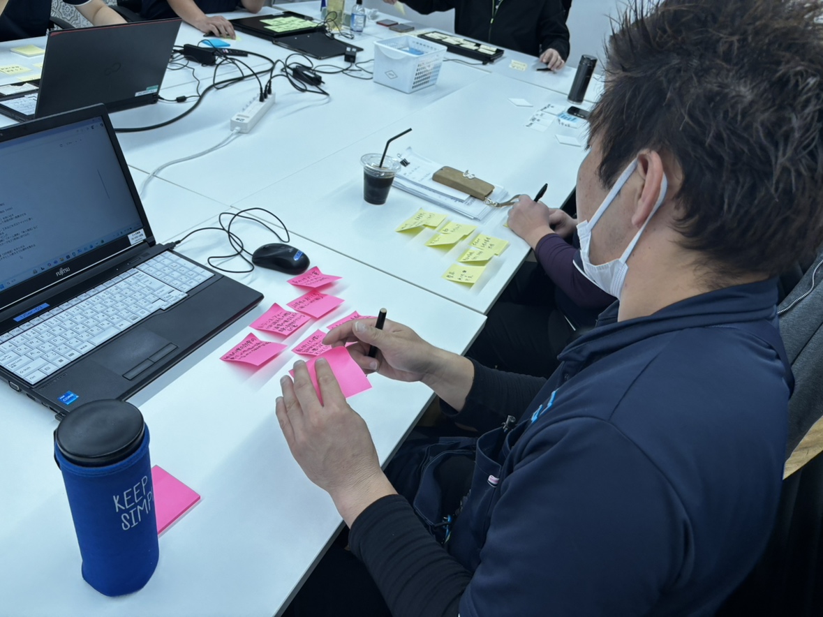 ▲ポストイットにそれぞれが考える現状課題を出していきます。このあたり、普段やってる課題だしセッションが活きてる感じがする!文化としての根付きを感じるこのごろ、、、