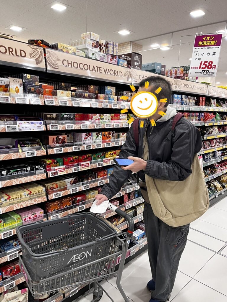 ご本人様が自身のスマホの電卓で計算し、決められた金額内でお買い物をされ、場所が分からない時は自ら店員さんに聞きに行きと、とても自主的な様子を見ることができました。