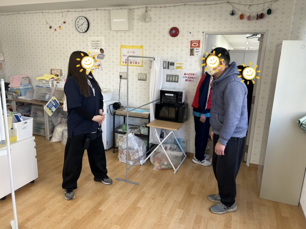 就労マナーとしても『あいさつ』は大事で、まずは利用者様と『あいさつの基本』と施設や就労訓練の場面おける『あいさつの例』の勉強会を行いました。