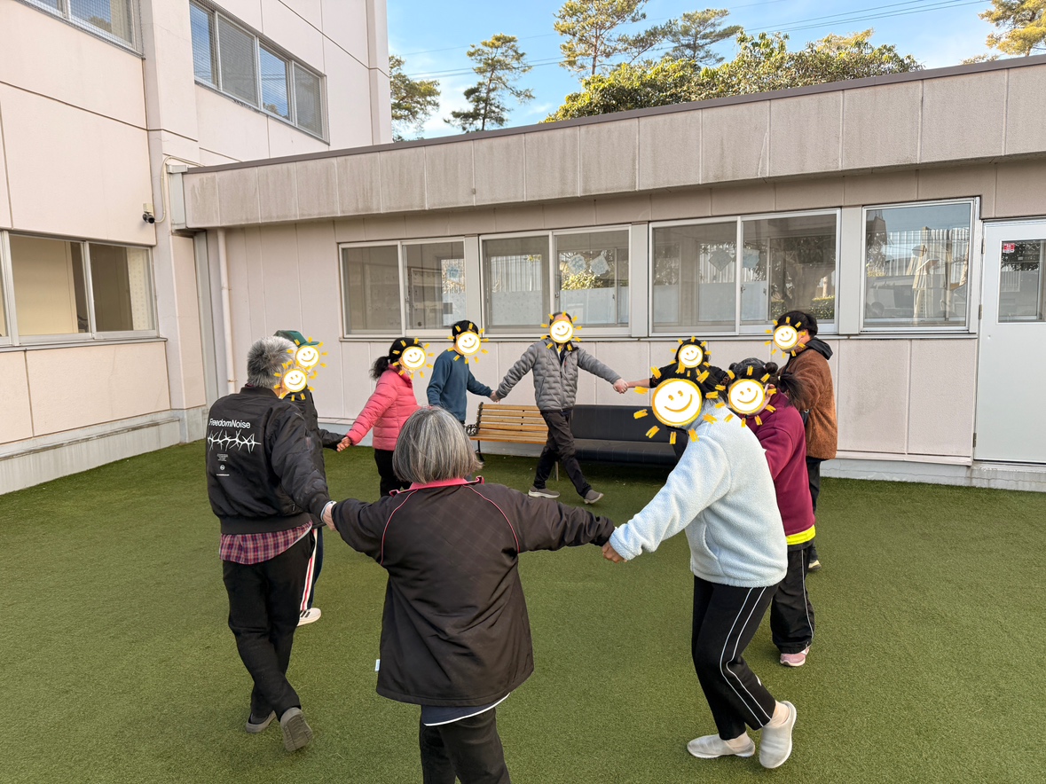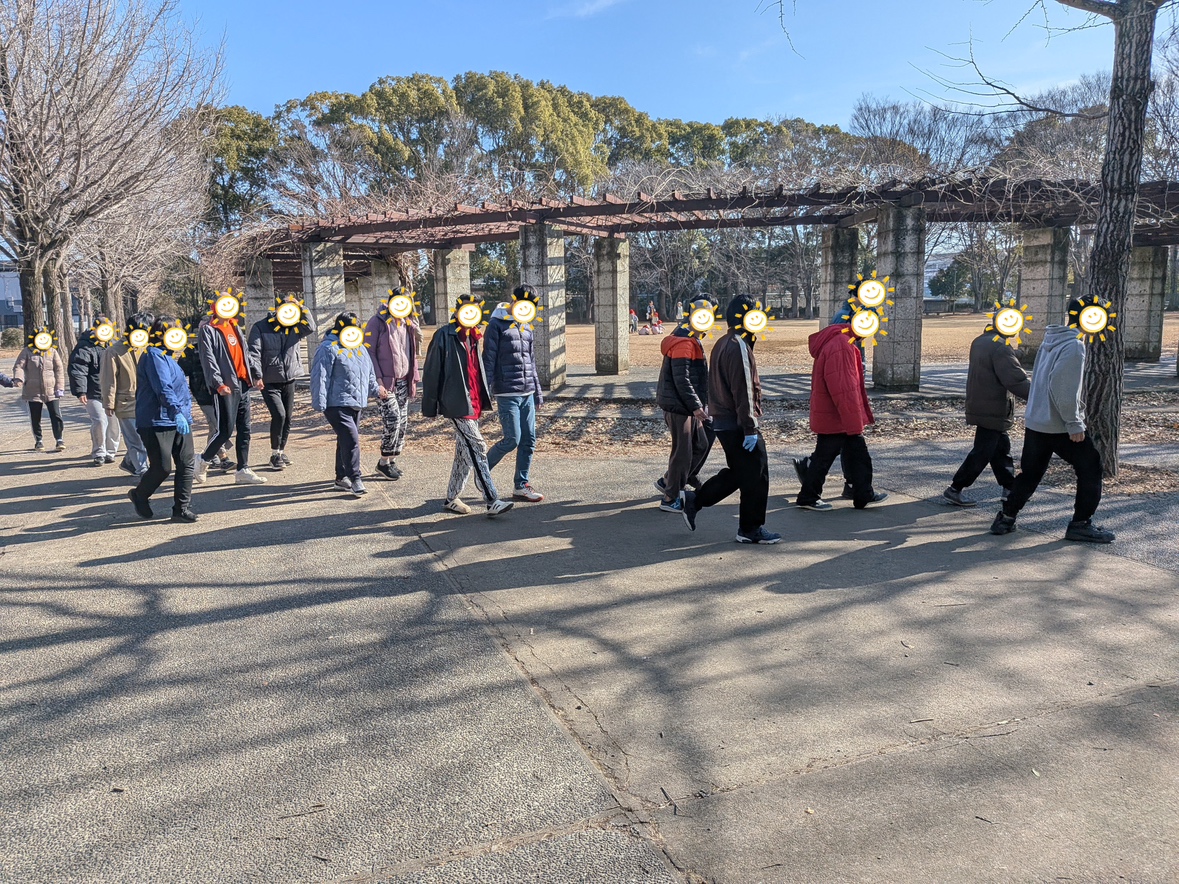 本日は晴天に恵まれており、気候も温かかった事もあり、AMの戸外歩行だけでなく、PMのおやつの後にも戸外歩行を実施しております。