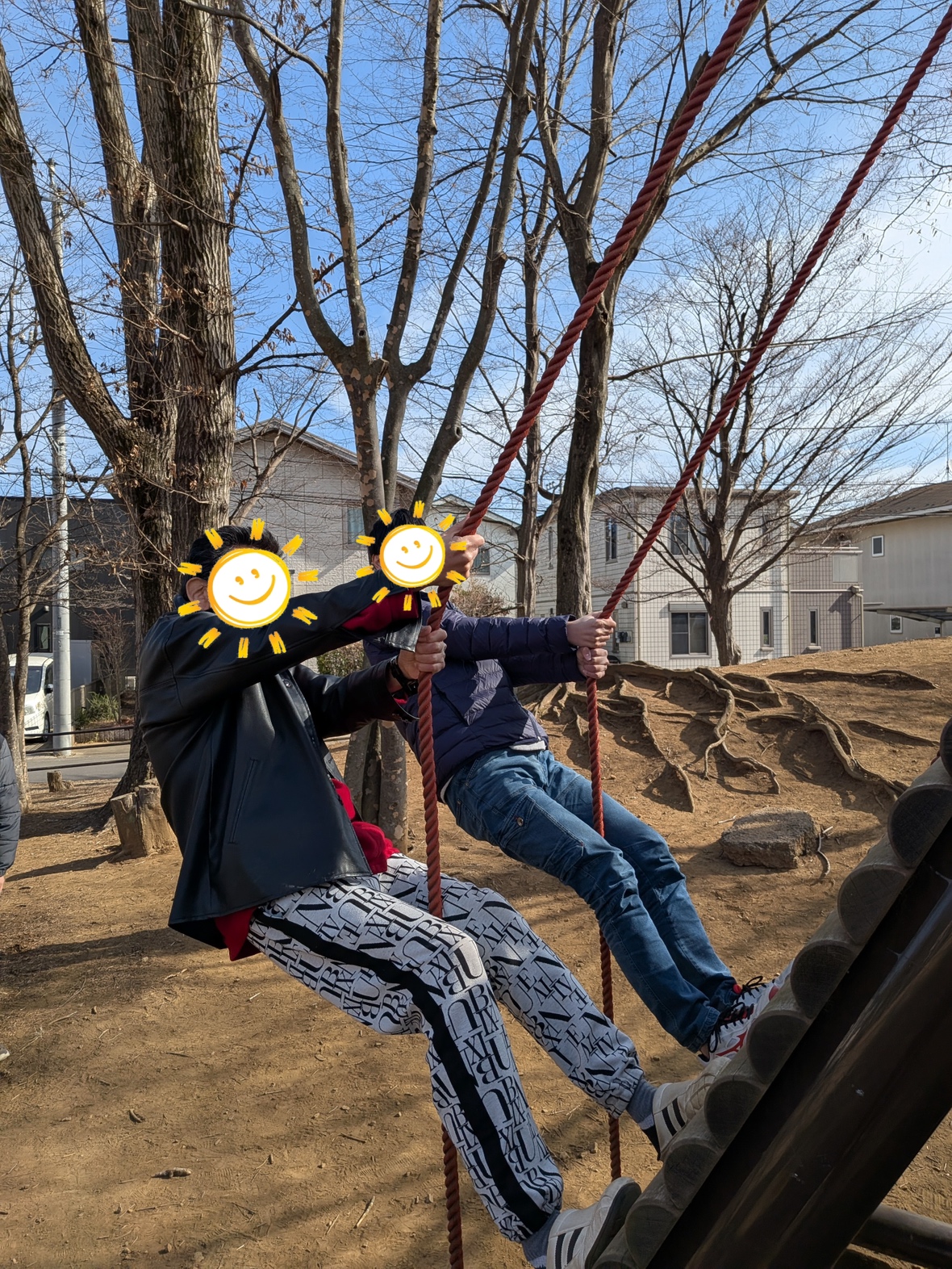 また、本日はサプライズで「公園の遊具で遊ぼう!」を企画していましたが、まさかの滑り台が使用禁止。変わりに近くのロープのぼりを体験!