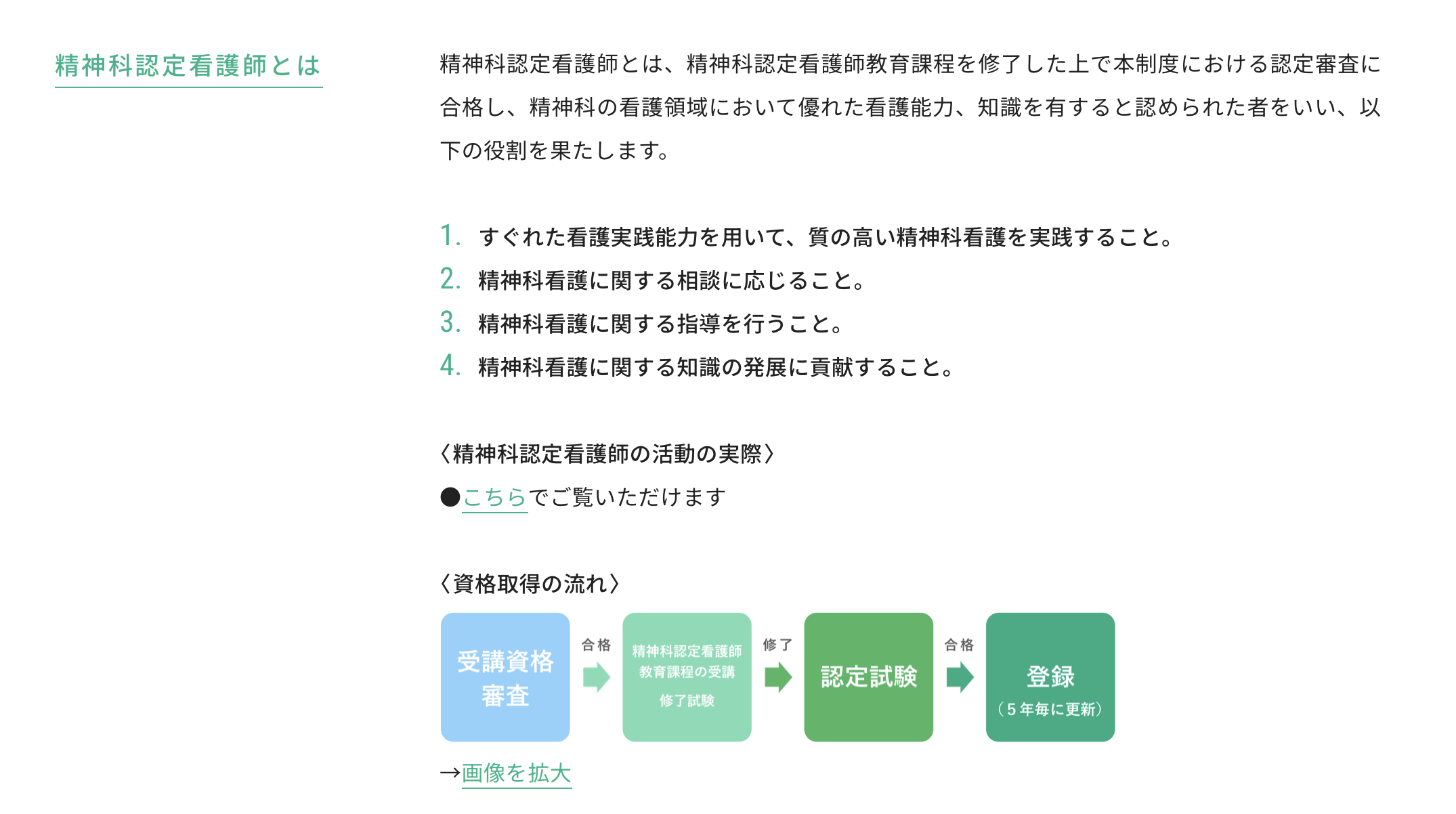 精神科認定看護師は、現行の教育課程は2024年度で終了しました。
