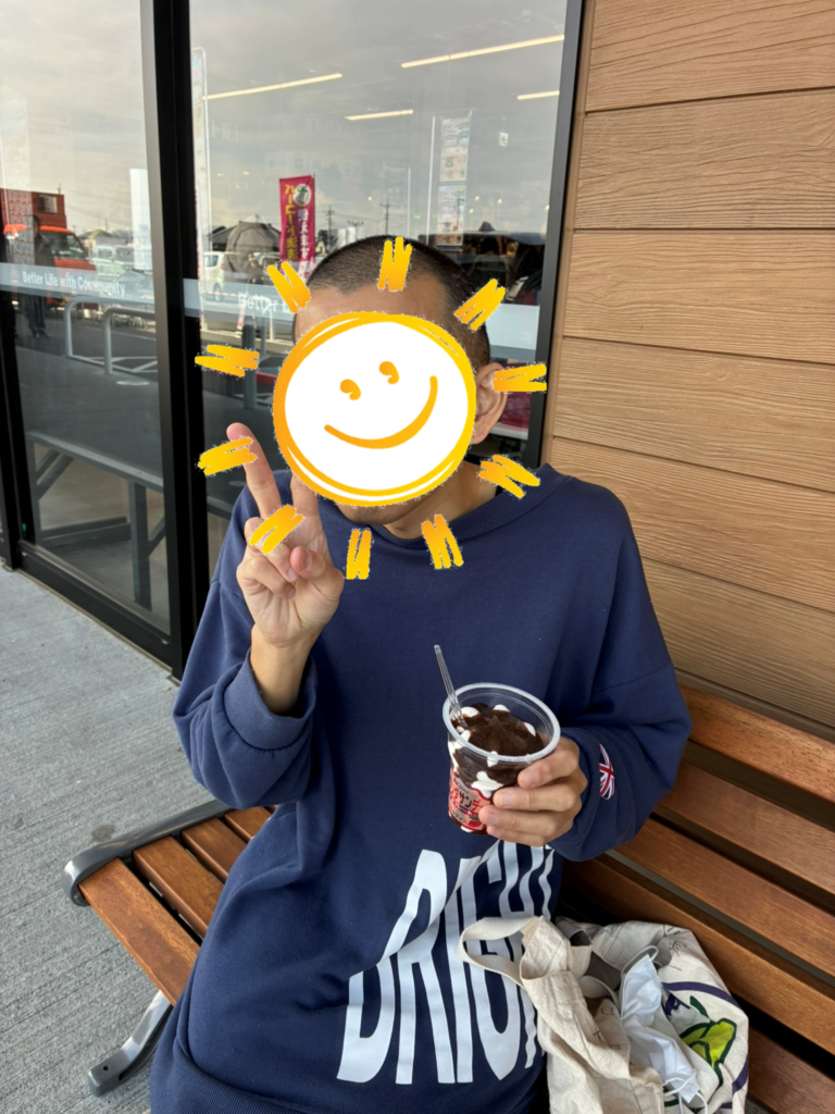 お小遣いの残金を確認しながら日用品とおやつ、アイスを購入。「次回は髭剃りを1個にしてその代わりにおやつをもう一個買う」と発言ありました。🤣