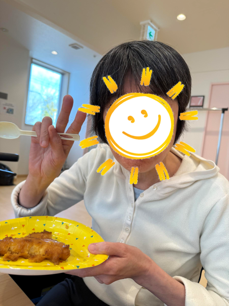 舌で潰せる軟らかさに仕上がり、普段は形がなく、何を食べているのかわからない利用者様も、形のあるクリスピーチキンを見てとても喜んで下さいました😊