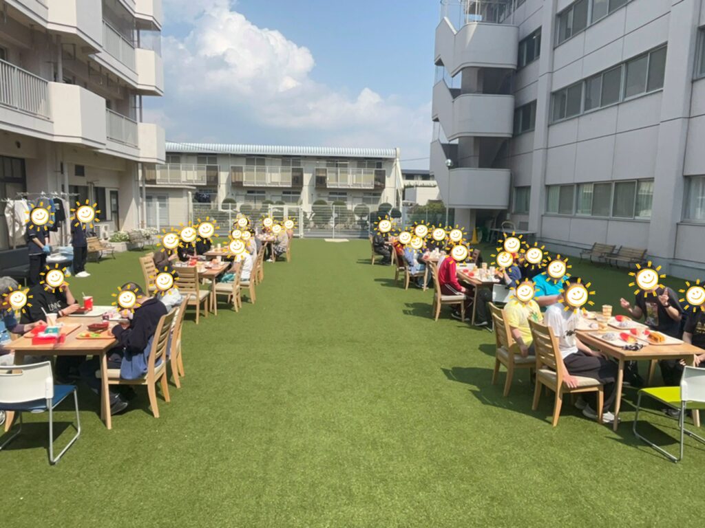 天候にも恵まれ、風も穏やかだったため、中庭にて皆様ご一緒に召し上がっていただきました。
