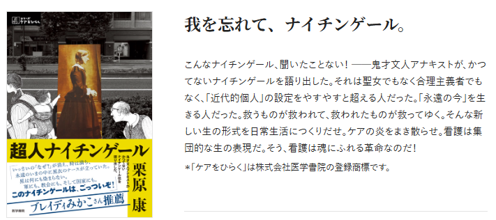 皆さんにお勧めの書籍『超人 ナイチンゲール』は、看護に興味がない方にも是非ご一読いただきたい傑作!!