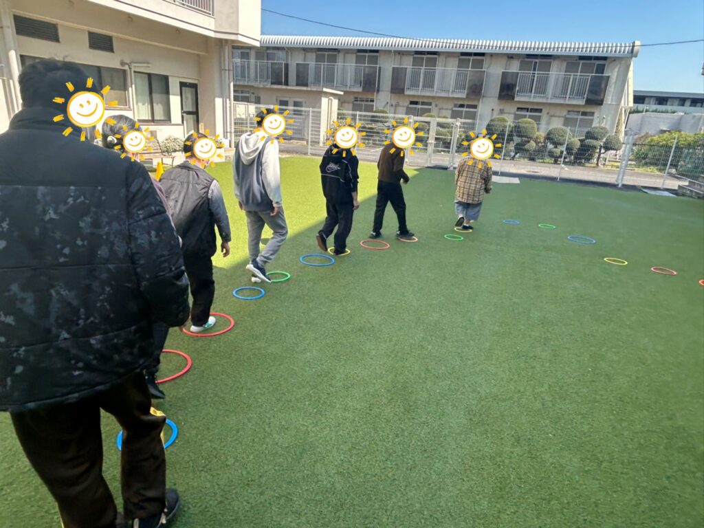 利用者様が集団の渦に合わせられるよう、いい動きをしてくれていました!