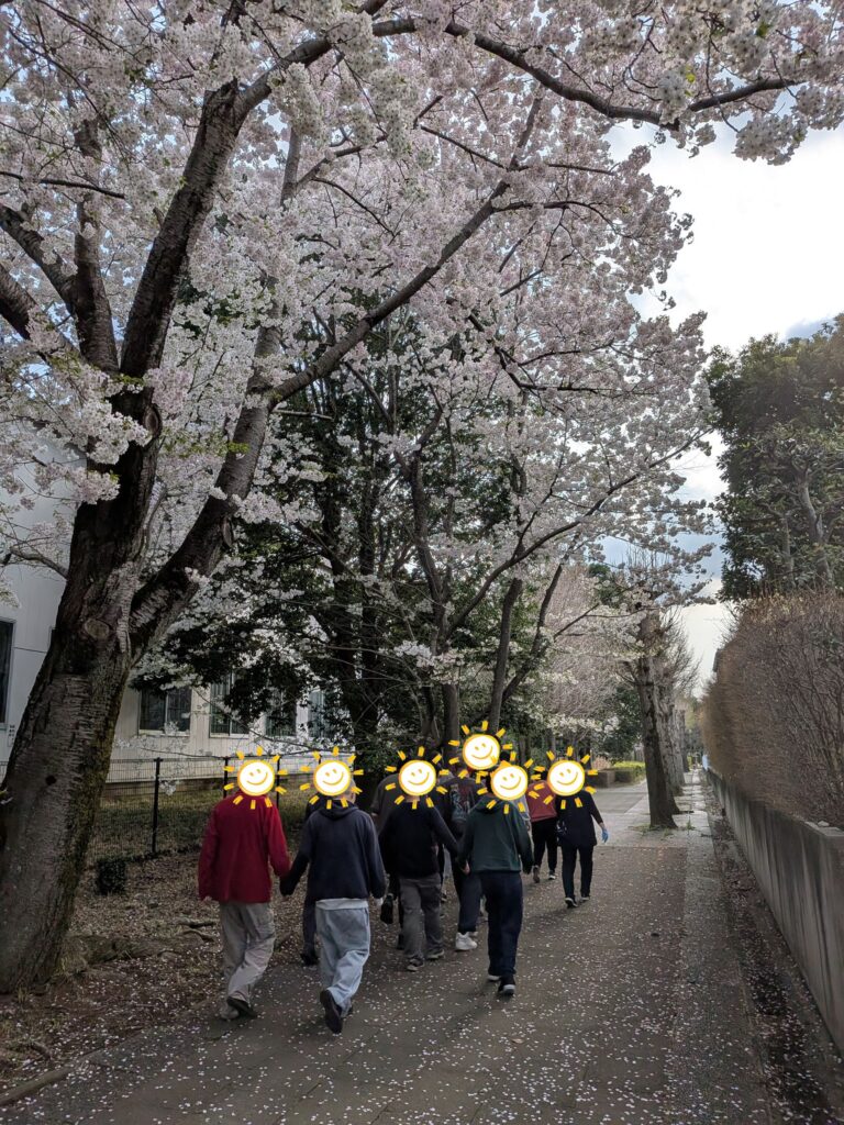 本日は、新入職のU村さんが初参加、そしてM本NSも参加しての戸外歩行!参加者も21名となり、大所帯となっております。