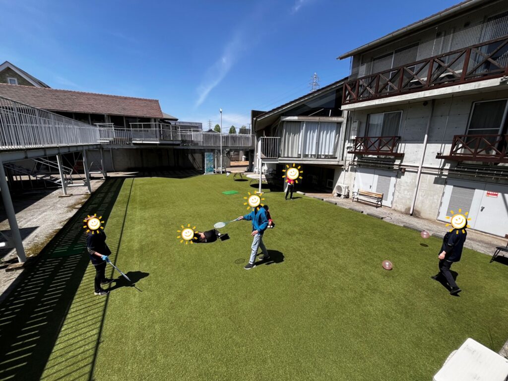 ボール遊びをしたり、バドミントンをしたり、寝っ転がったり…。
